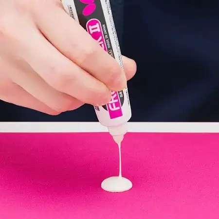 - حدود 10 دقیقه زمان دهید تا چسب رنگ سفید شیری خود را از دست دهد و شفاف شود.