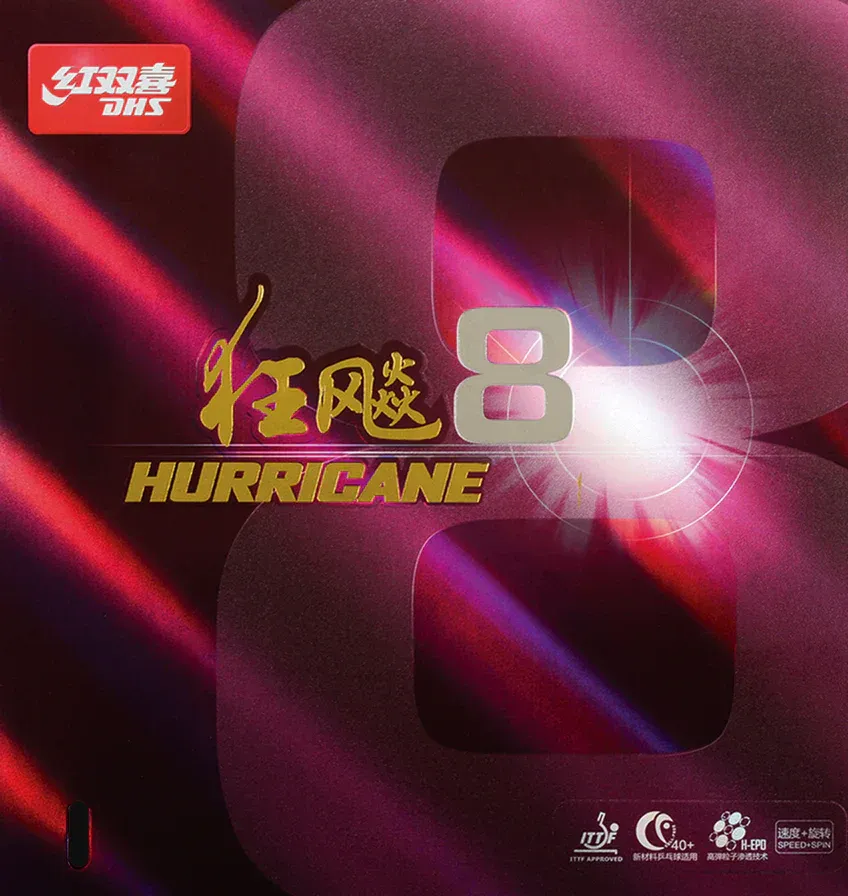 دبل هپینس با رویه Hurricane 8 نسل جدیدی از رویه های چسبنده را ارایه کرده است. این رویه تعادل خوبی بین قدرت و کشش را حفظ می کند. هاریکن 8 چرخش و قوس منحصر به فردی را فراهم می کند و سرعت را به میزان قابل توجهی افزایش می دهد که این امر احساس خوشایندی را برای بازیکنان تهاجمی ایجاد می کند.