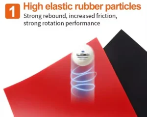 • دانه‌های لاستیک از نوع داخلی و به شکل معکوس است. لاستیک با الاستیک بالا ، بازگشت قوی، افزایش اصطکاک، عملکرد چرخش بالا را به همراه دارد.